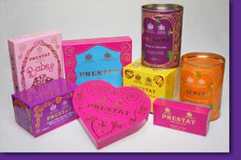 Cazzi Collection stock the following products from the Prestat range: Organic chocolate wafers in rich and dark, dark mint, white sweet orange, milk earl grey, and cinnamon, truffels in banoffee, orange with lemon, hot chocolate, prunes in chocolate, apricots in chocolate, prestat babes and a variety of mixed chocolates.